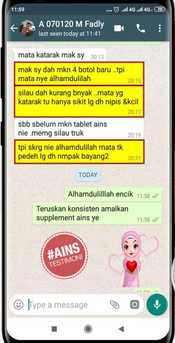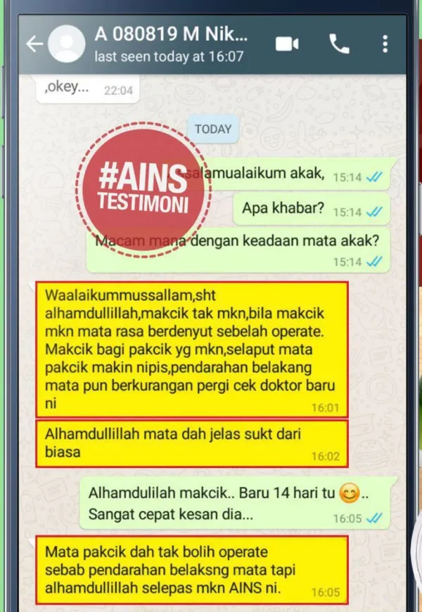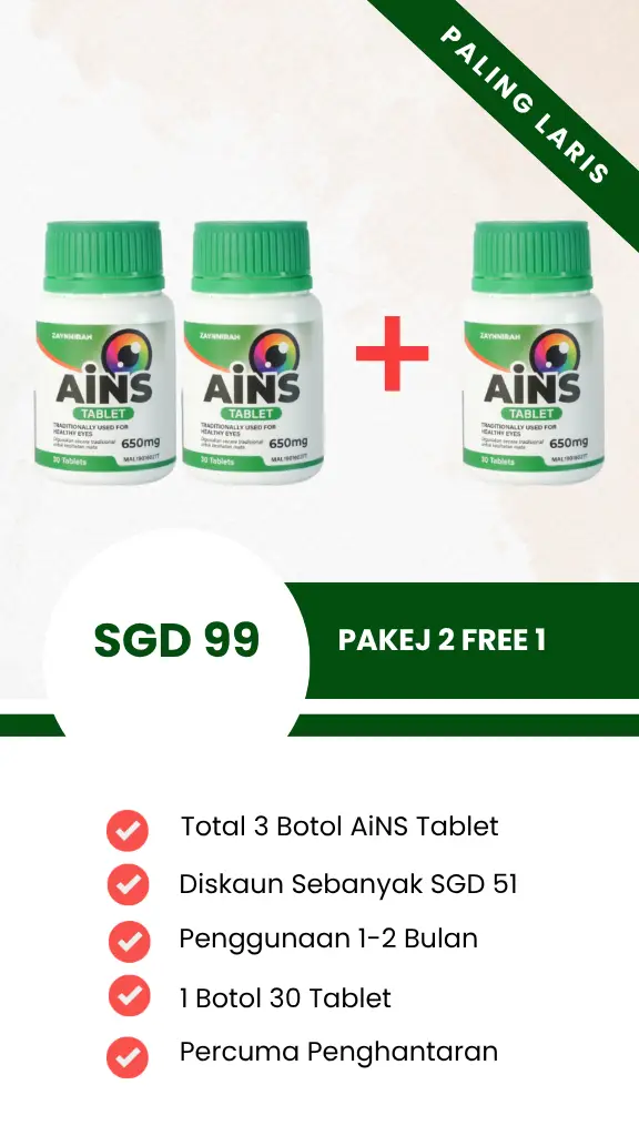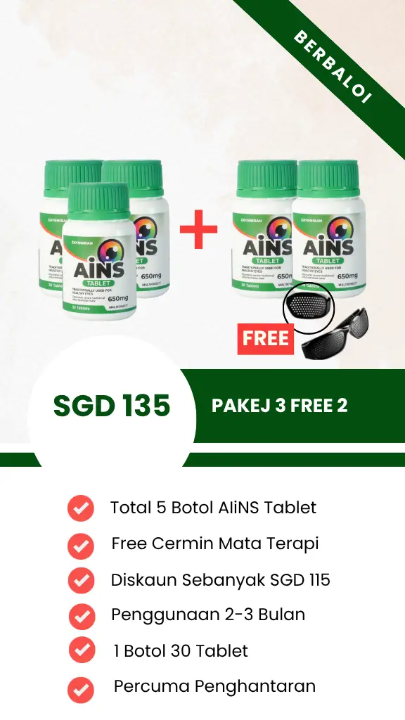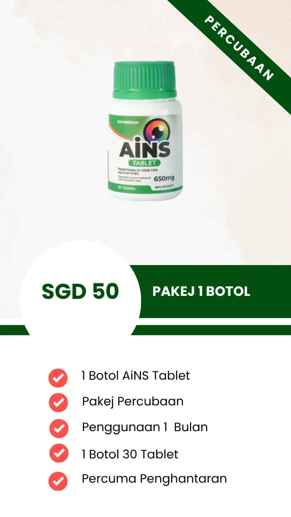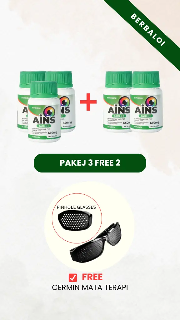 Anda mungkin terpaksa jalani pembedahan atau melakukan laser dengan kos yang mahal, sedangkan anda boleh mencegahnya hanya dengan amalkan AiNS Tablet vitamin lengkap penyelesaian mata anda.